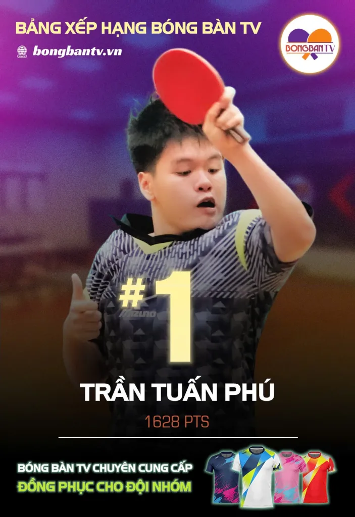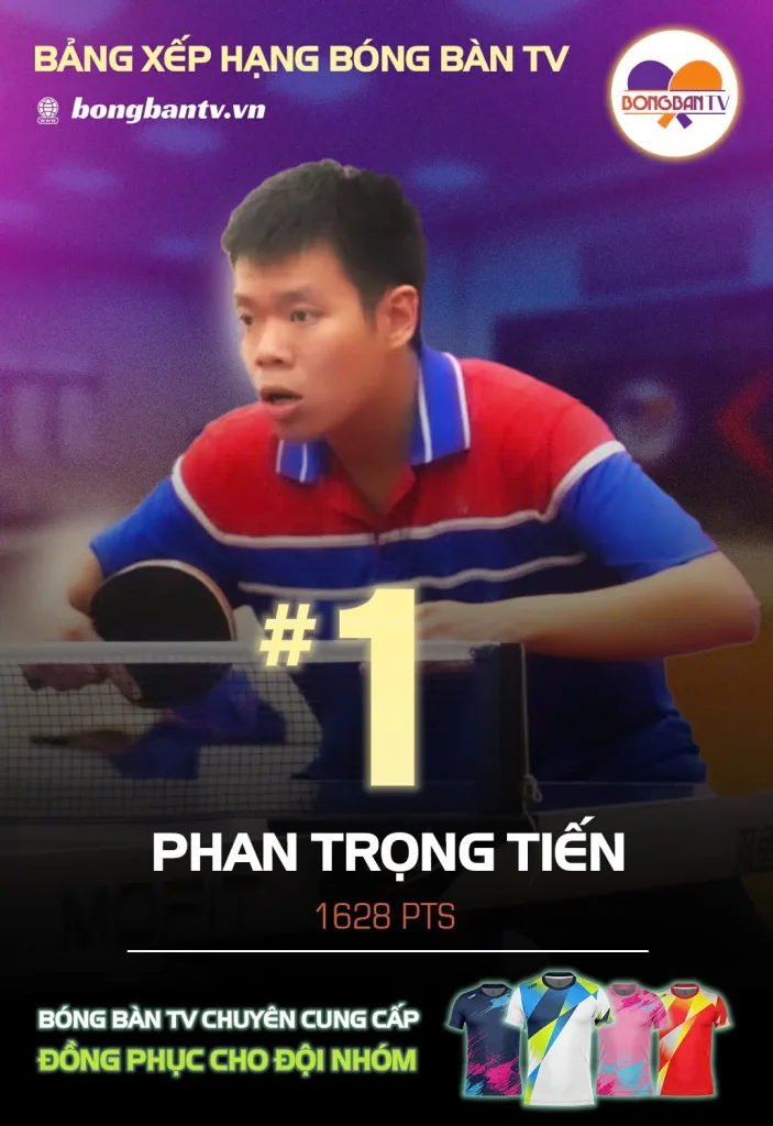 Kết thúc năm 2024 và khởi đầu mùa giải mới 2025 Bảng Xếp Hạng BÓNG BÀN TV giới thiệu 2 gương mặt TOP1 Server là PHAN TRỌNG TIẾN và TRẦN TUẤN PHÚ. 2 tay vợt đến từ thành phố biển Vũng Tàu xinh đẹp chia nhau vị trí dẫn đầu với 1628 điểm. Tiến thì tham gia giải Bóng Bàn TV Open lần 3 và Phú thì tham gia Bóng Bàn TV Open lần 4, cả 2 cùng “start up” ở hạng D với 1500 điểm và dành tất cả các chiến thắng từ vòng loại cho đến trận chung kết, số điểm thưởng cho 2 tay vợt này là 128 điểm ở mỗi giải. Vói số điểm hiện tại thì theo Bảng Xếp Hạng Bóng Bàn TV thì 2 tay vợt sẽ lên trình C và sẽ tham dự các giải đấu từ 1700 điểm trở xuống. Xin được chúc mừng những tay vợt trẻ đã khẳng định được tài năng của mình qua các mùa giải.