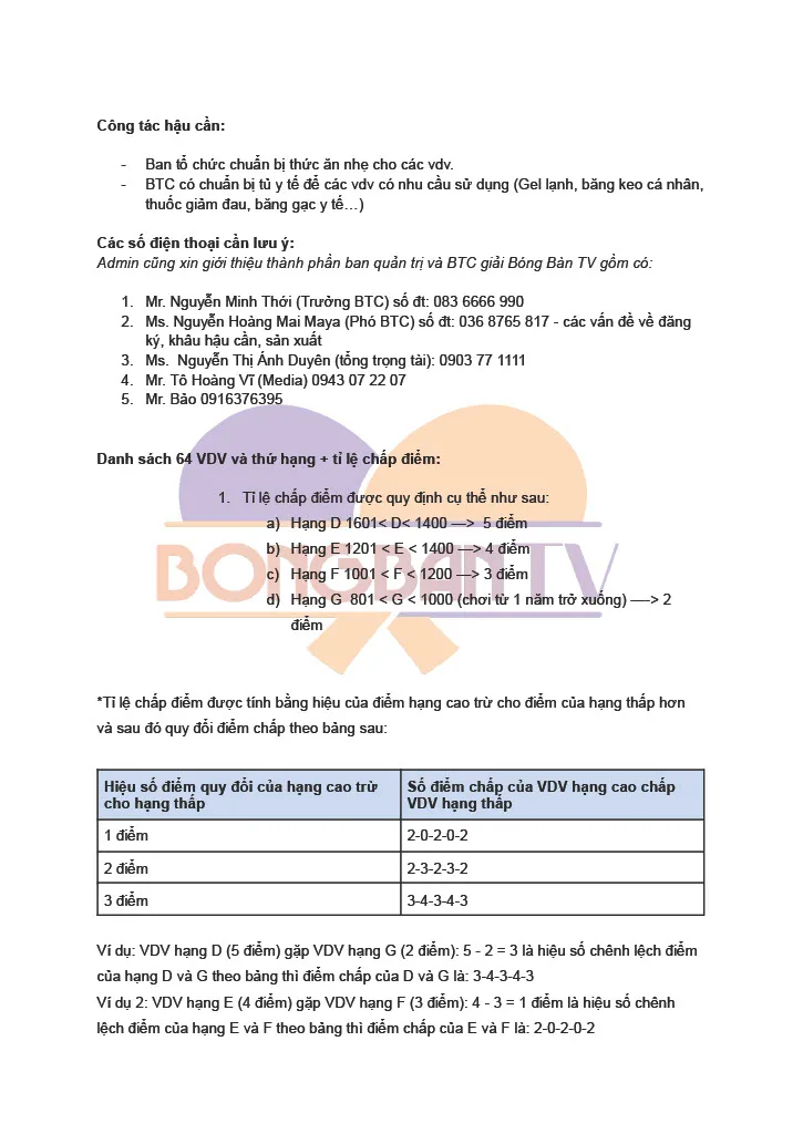 Cẩm nang thi đấu tại giải Bóng Bàn TV Open Tranh Cup NTC – Chào mừng ngày Thầy thuốc Việt Nam