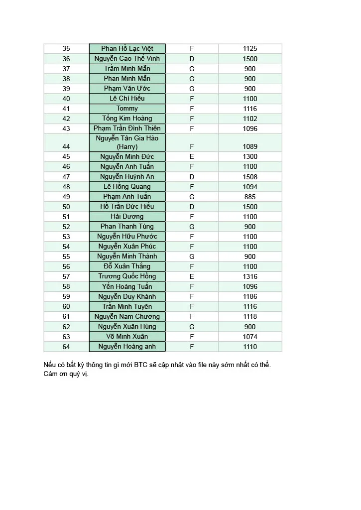 Giải đơn dưới 1600 điểm (tương đương hạng D/E/F/G diễn đàn)