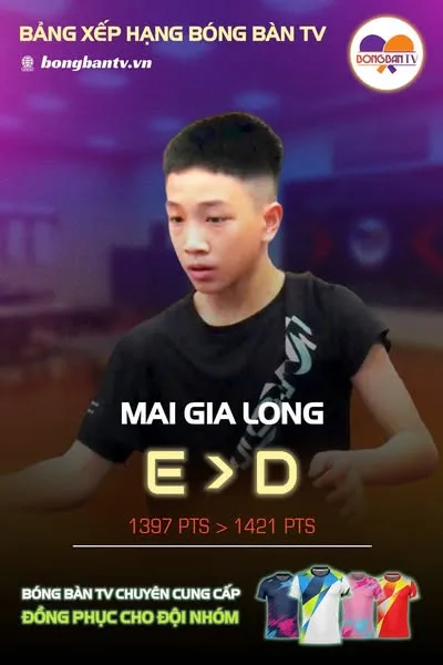🏓 Mai Gia Long đạt 1421 điểm, chính thức chuyển từ hạng E lên hạng D – một thành tích đầy thuyết phục sau những trận đấu đỉnh cao.
